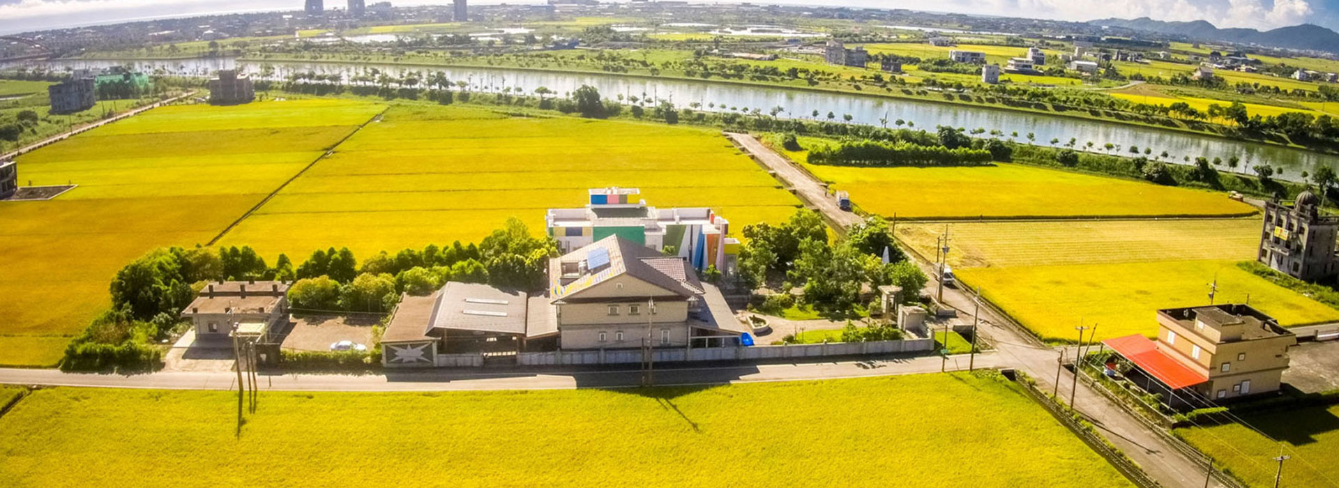 藍天白雲交織著綠野田地,